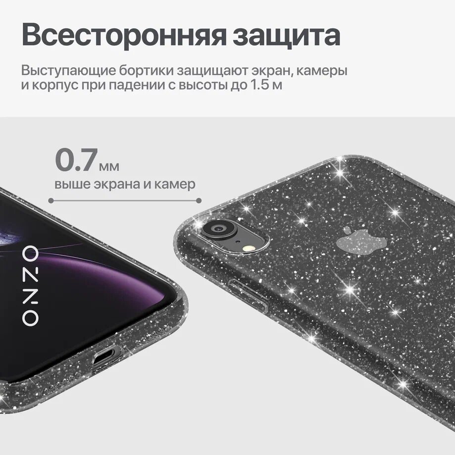 Чехол для iPhone XR / Чехол на Айфон XR, темно-прозрачный, с блестками, ONZO