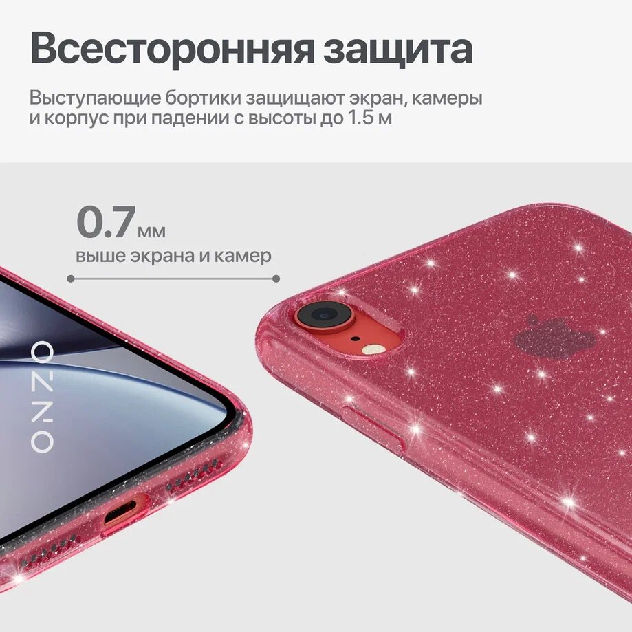 Отзывы на Силиконовый чехол на iPhone XR / Айфон xr бампер красный прозрачный с блестками