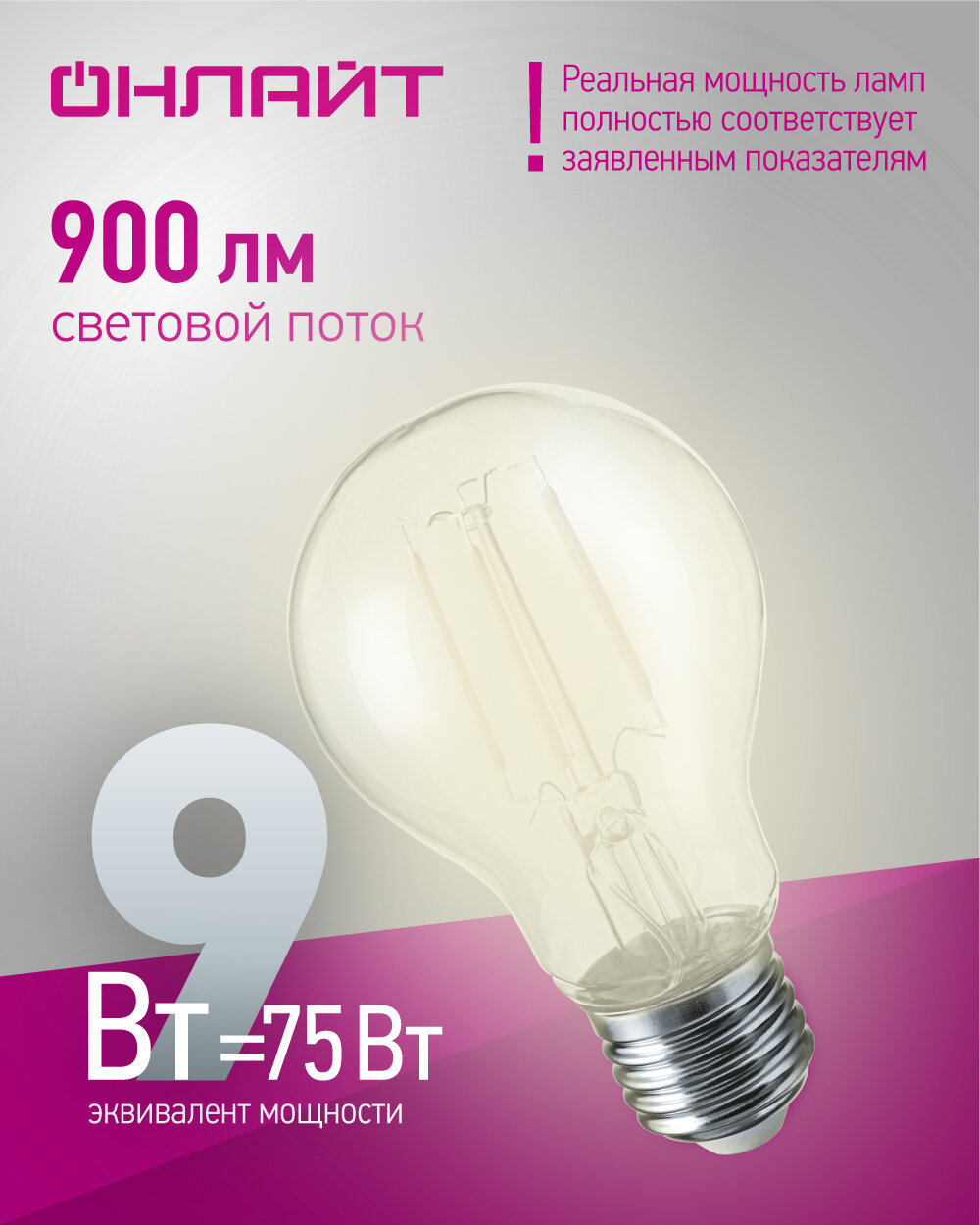 Отзывы на Лампа светодиодная филаментная онлайт 80 875, 9 Вт, груша Е27, дневного света 4000К, 1 шт.