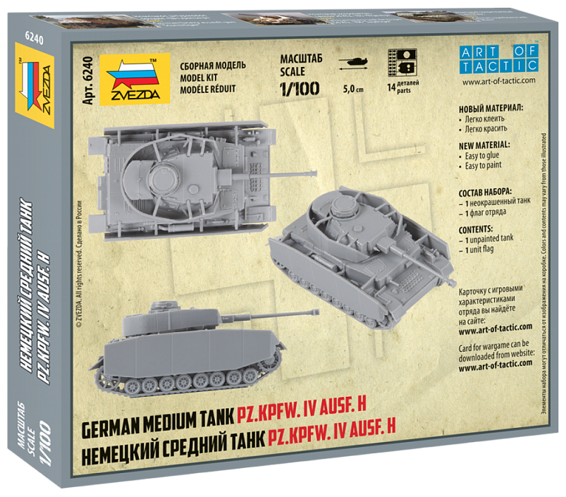 ZVEZDA 6240 Модель для сборки без клея Немецкий средний танк Т-4Н 6240 Немецкий средний танк Т-4 H 1/100
