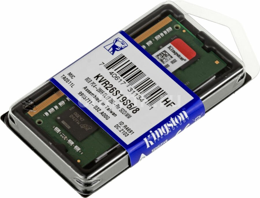Оперативная память Kingston VALUERAM KVR26S19S6/8 DDR4 - 8ГБ 2666МГц, для ноутбуков (SO-DIMM), Ret информация: