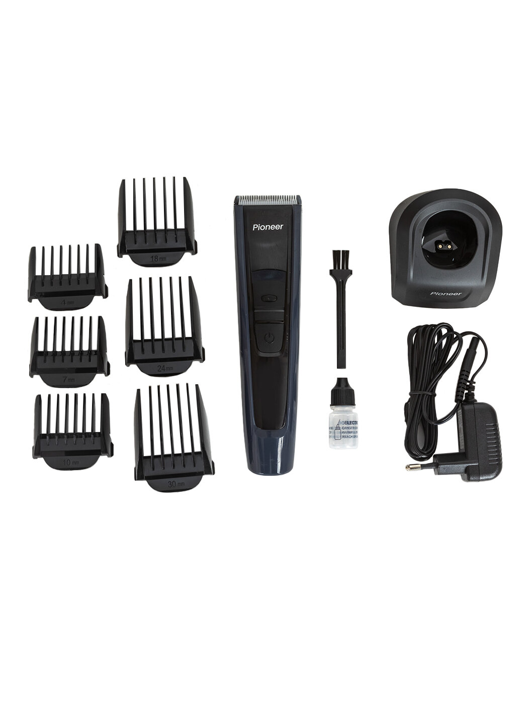 Машинка для стрижки волос Pioneer со стальным и керамическим движущимся лезвиями, 2 скорости, 7 насадок, работа от аккумулятора