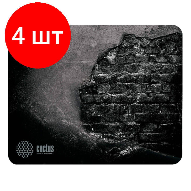 Комплект 4 штук, Коврик для мыши Cactus CS-MP-DWM Brick Wall Средний 300x250x3мм информация: