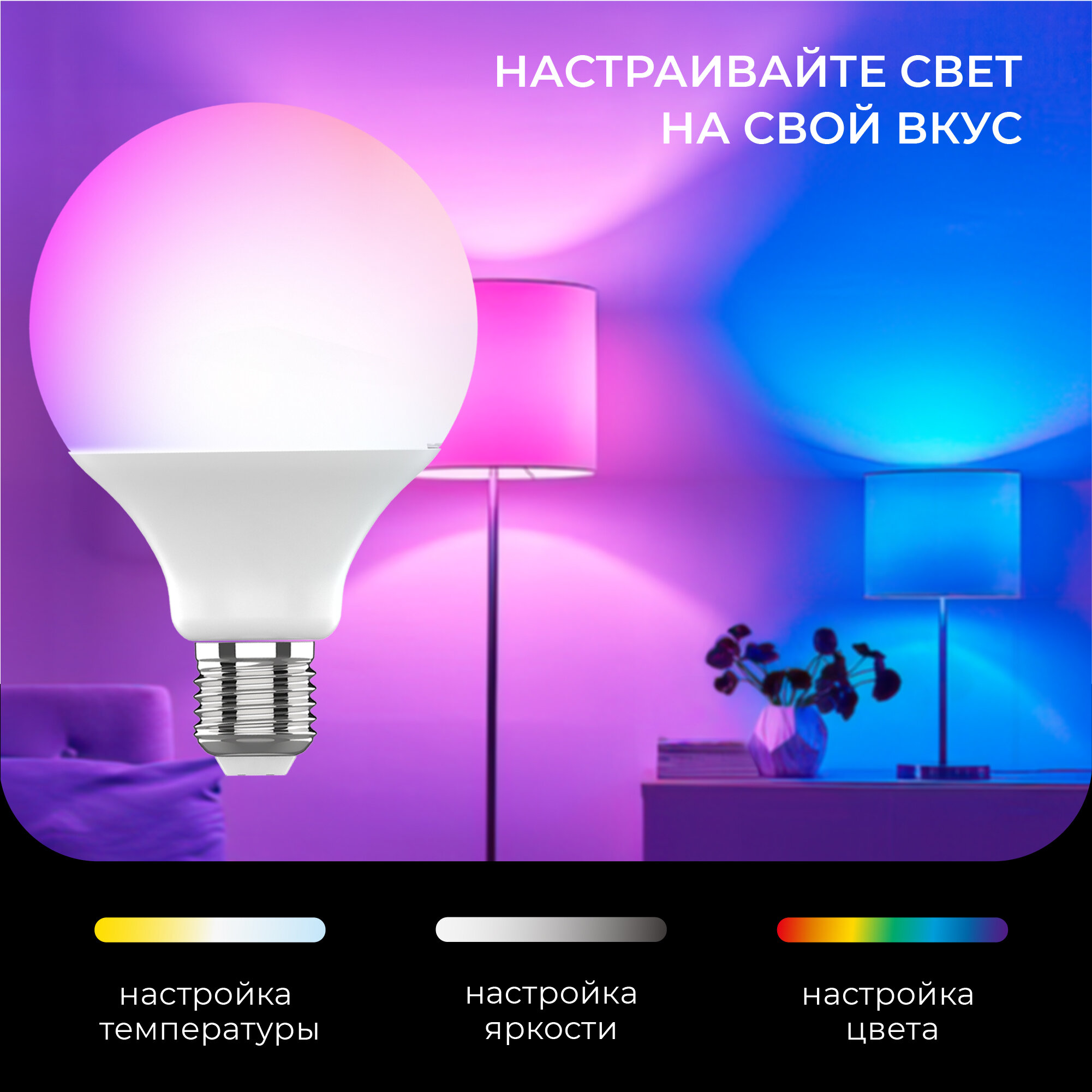 Лампа HIPER IoT R1 RGB IoT LED R1 умная цветная LED/Wi-Fi/Е27/плавная регулировка яркости/12Вт/2700K - 6500K/1020лм