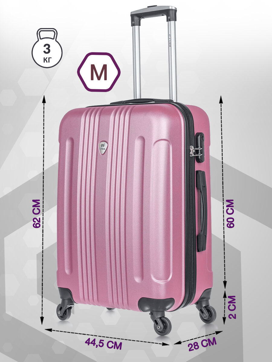 Чемодан семейный на колесиках L'Case Bangkok (материал: ABS-пластик, кодовый замок, съемные колесики, размер M, лиловый)