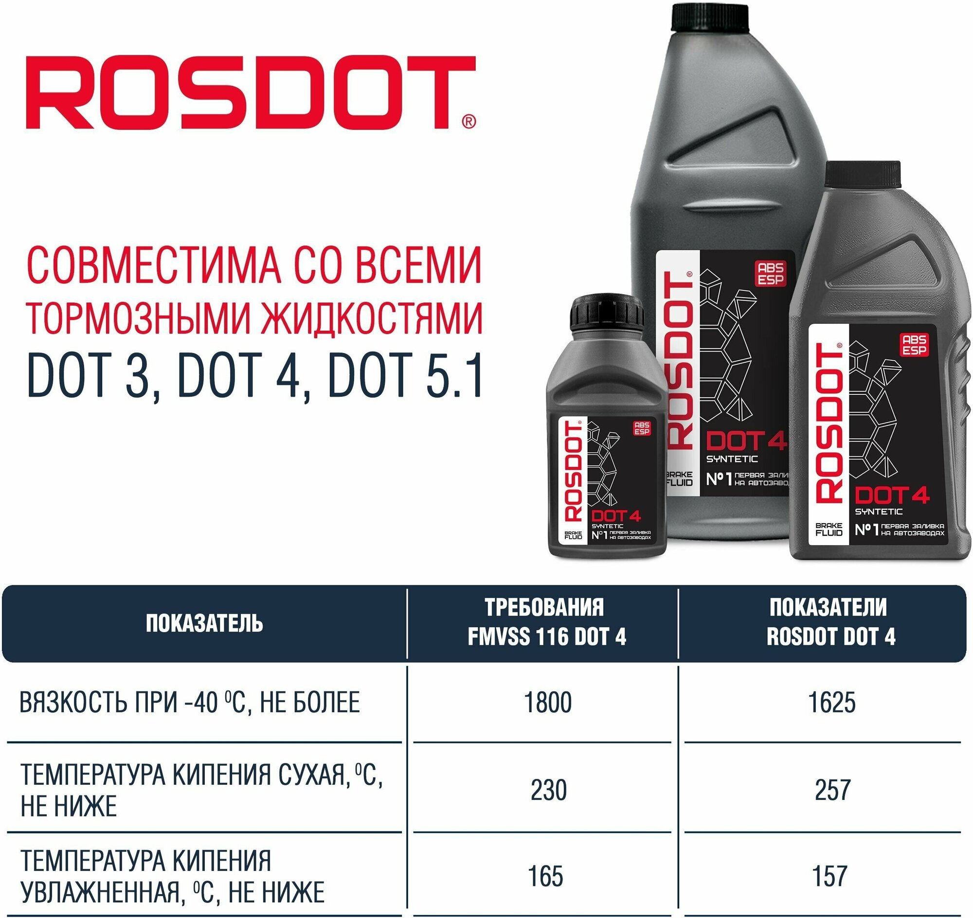 Тормозная жидкость ROSDOT DOT-4 Synthetic, 0.9, 455, 1 шт