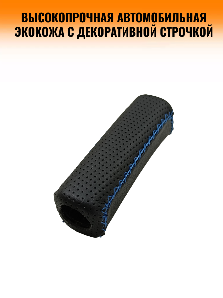 Ручка ручного тормоза (ручника) для автомобилей ВАЗ-2110, Лада Приора (Lada Priora), Лада Гранта (Lada Granta), Лада Калина-2 (Lada Kalina-2)-черный с синей строчкой перфорация информация: