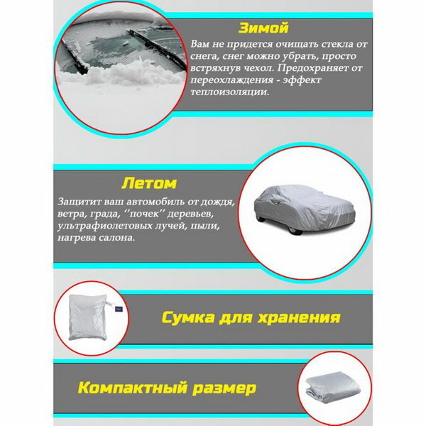 Тент автомобильный водонепроницаемый, полиэстер, M, 430x165x120 см информация: