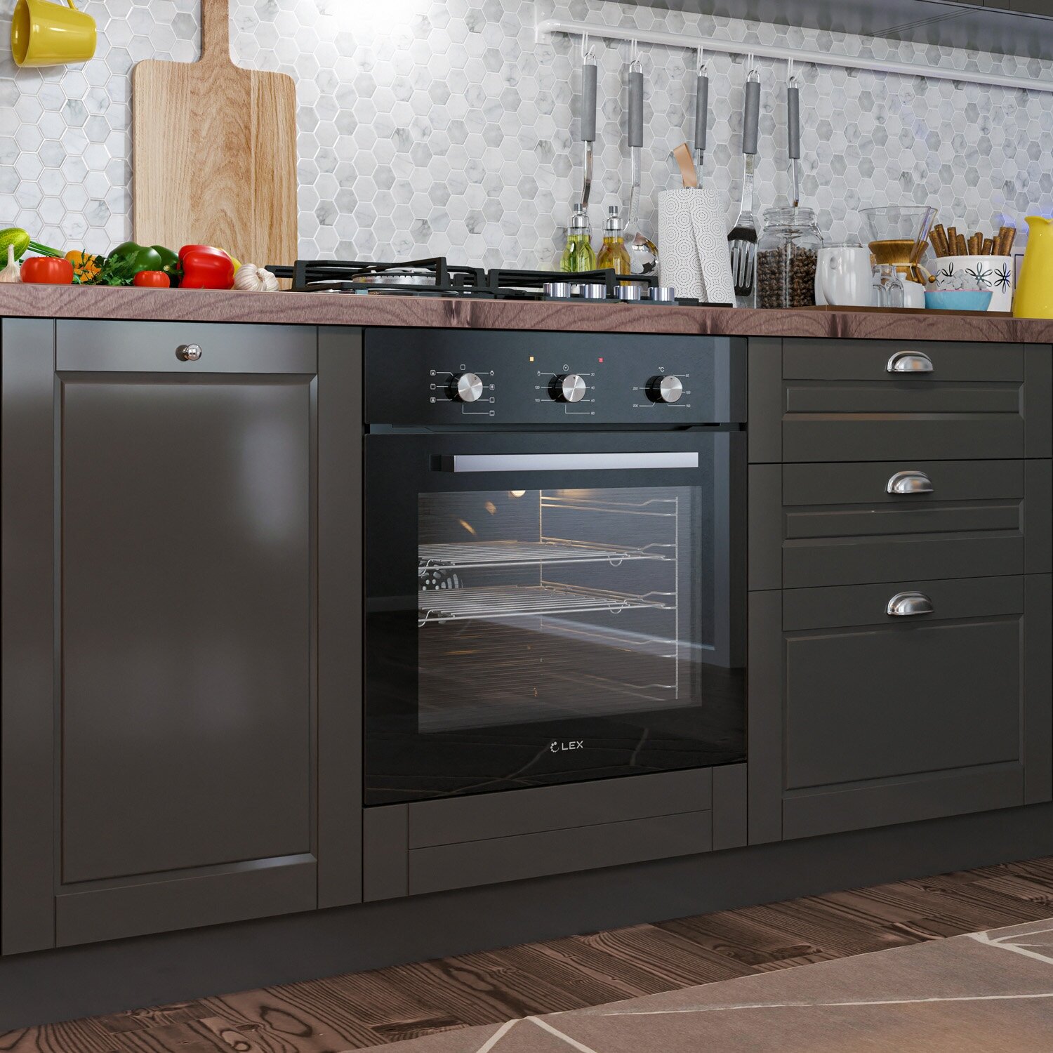 Духовой шкаф встраиваемый LEX EDM 077 C IV, 60 см, с конвекцией, механические ручки, объем 60 л, аналоговый таймер, телескопические направляющие.