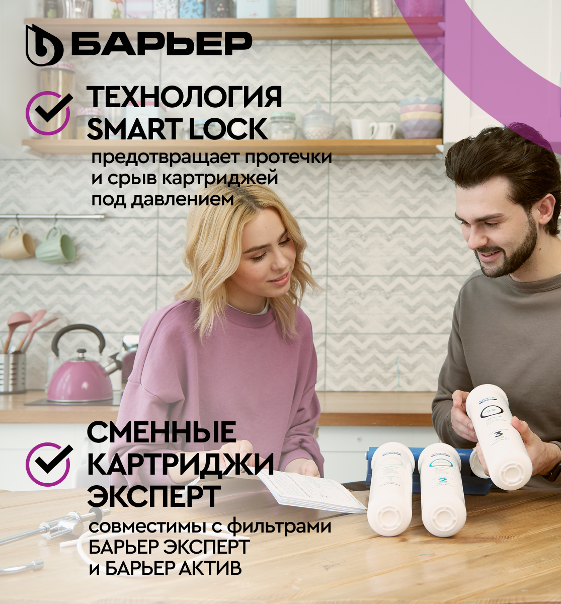 Отзывы на БАРЬЕР эксперт Стандарт, фильтр под мойку для очистки воды, удаляет хлор, трехступенчатый, быстросъемный (без крана)