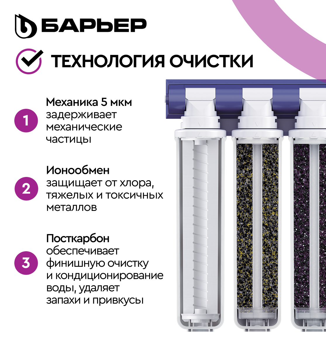 10 цен на БАРЬЕР эксперт Стандарт, фильтр под мойку для очистки воды, удаляет хлор, трехступенчатый, быстросъемный (без крана)