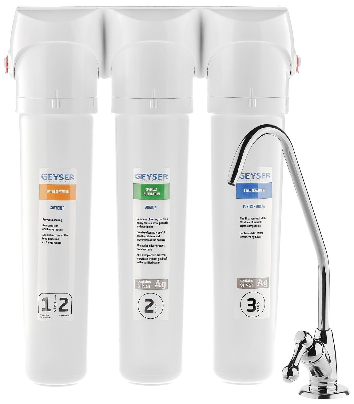Фильтр под мойку с краном Гейзер Смарт для жесткой воды, трехступенчатый, 16026