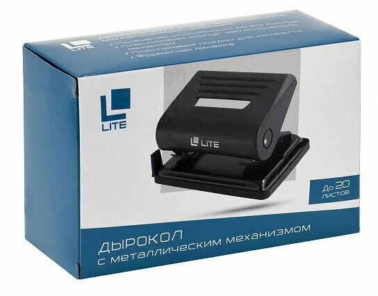 10 цен на Дырокол LITE до 20 листов, пластик, черный, с линейкой