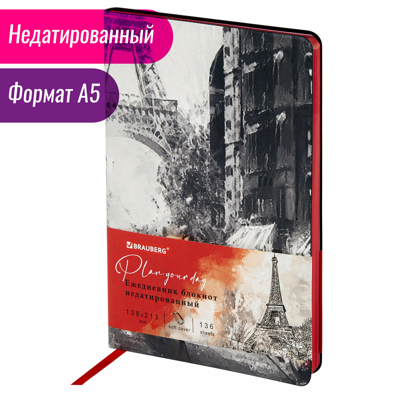 Ежедневник недатированный Brauberg А5 138х213 мм, Vista, гибкий, 136 листов, "Paris" (111992) 650 ₽