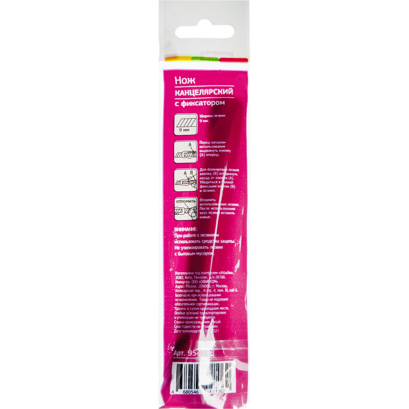Нож канцелярский 9мм Attache чёрный, цв. фиксатора информация: