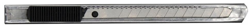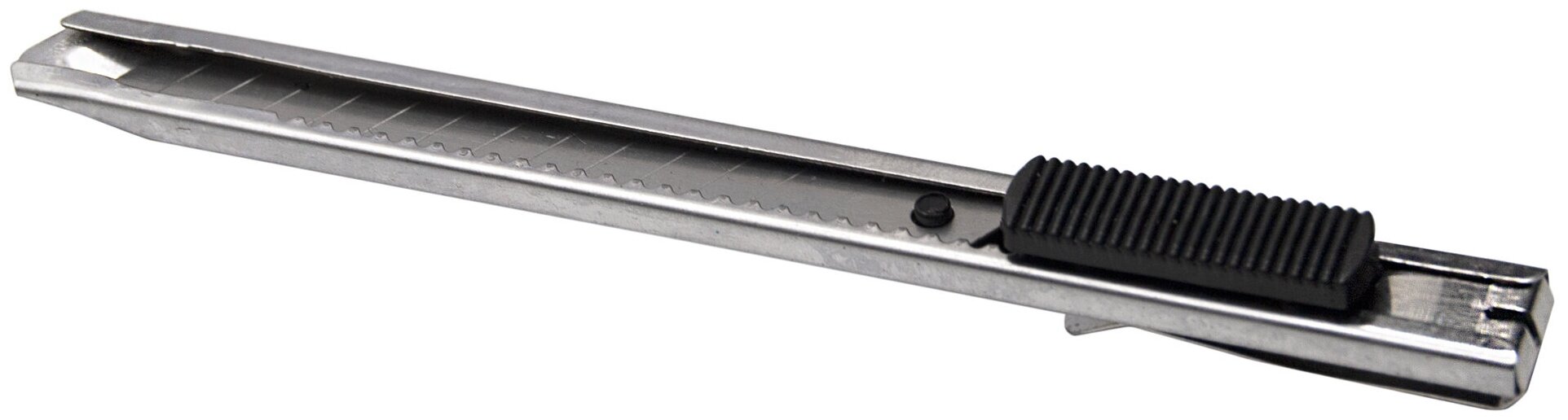 Нож канцелярский Silwerhof шир. лез.9мм выдвижное лезвие фиксатор сталь серебристый пакет с европод