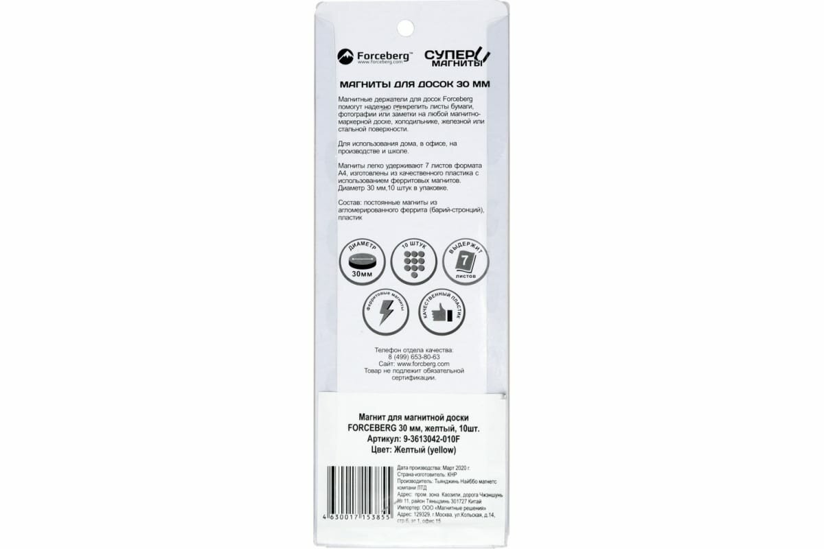Forceberg Магнит для магнитной доски 30 мм, желтый, 10шт 9-3613042-010F информация: