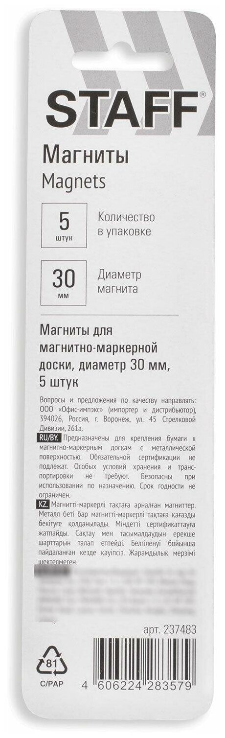 | Дополнительная информация | диаметр магнита составляет 30 мм |