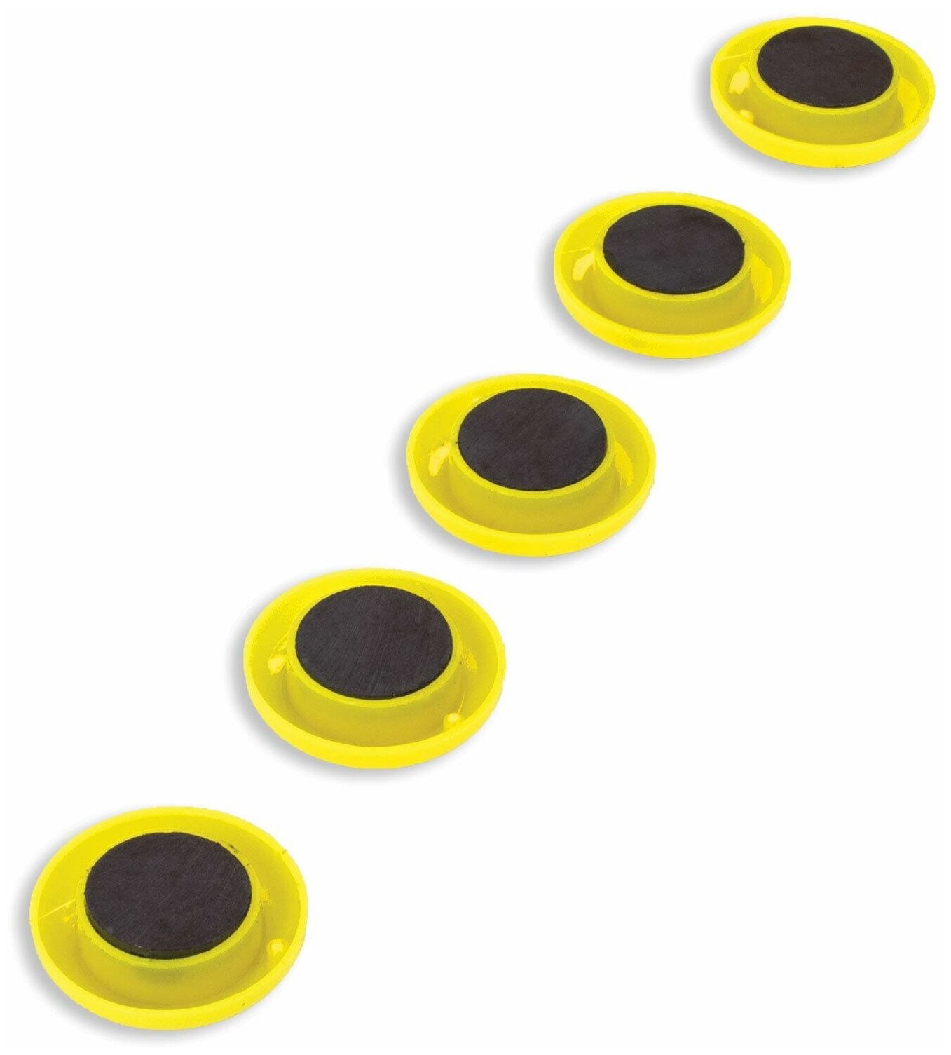 Магниты среднего диаметра, 30 мм, набор 5 штук, с рисунком смайлик, жёлтые, в блистере, STAFF "Basic", 237483 300 ₽