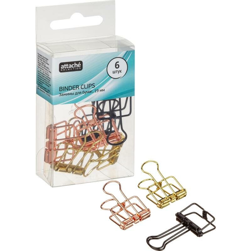 Зажимы для бумаг Attache Selection 19 мм цветные (6 штук в упаковке) 469 ₽