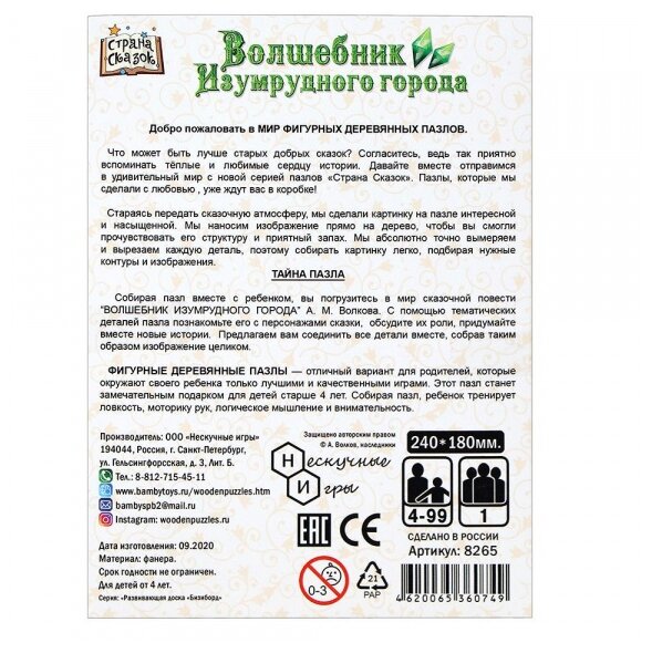 Страна сказок Фигурный деревянный пазл Волшебник изумрудного города арт.8265 (мрц 549 руб) /48 информация: