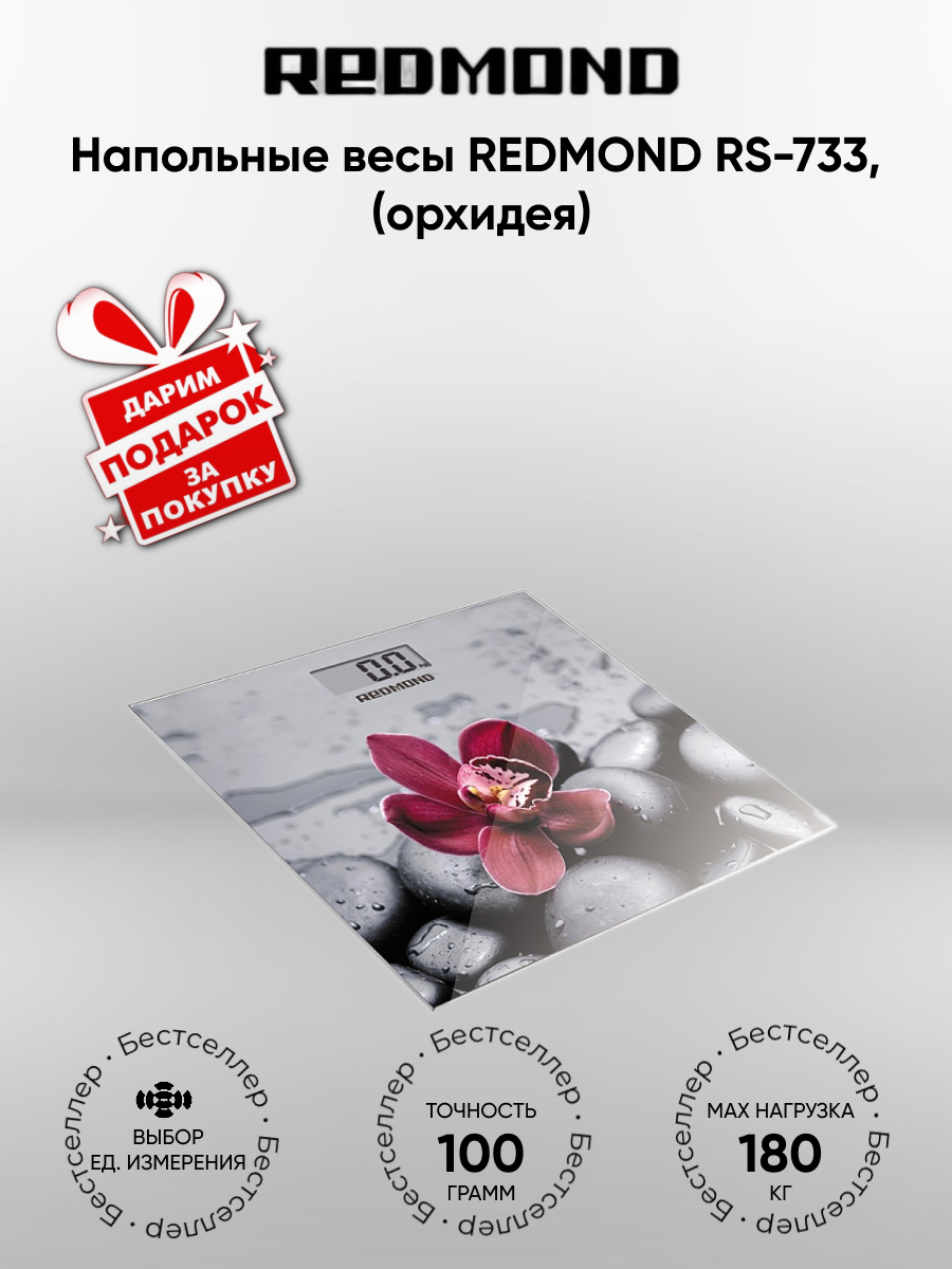 Напольные весы REDMOND RS-733 (орхидея), точность до 100 гр, от 5 до 180 кг