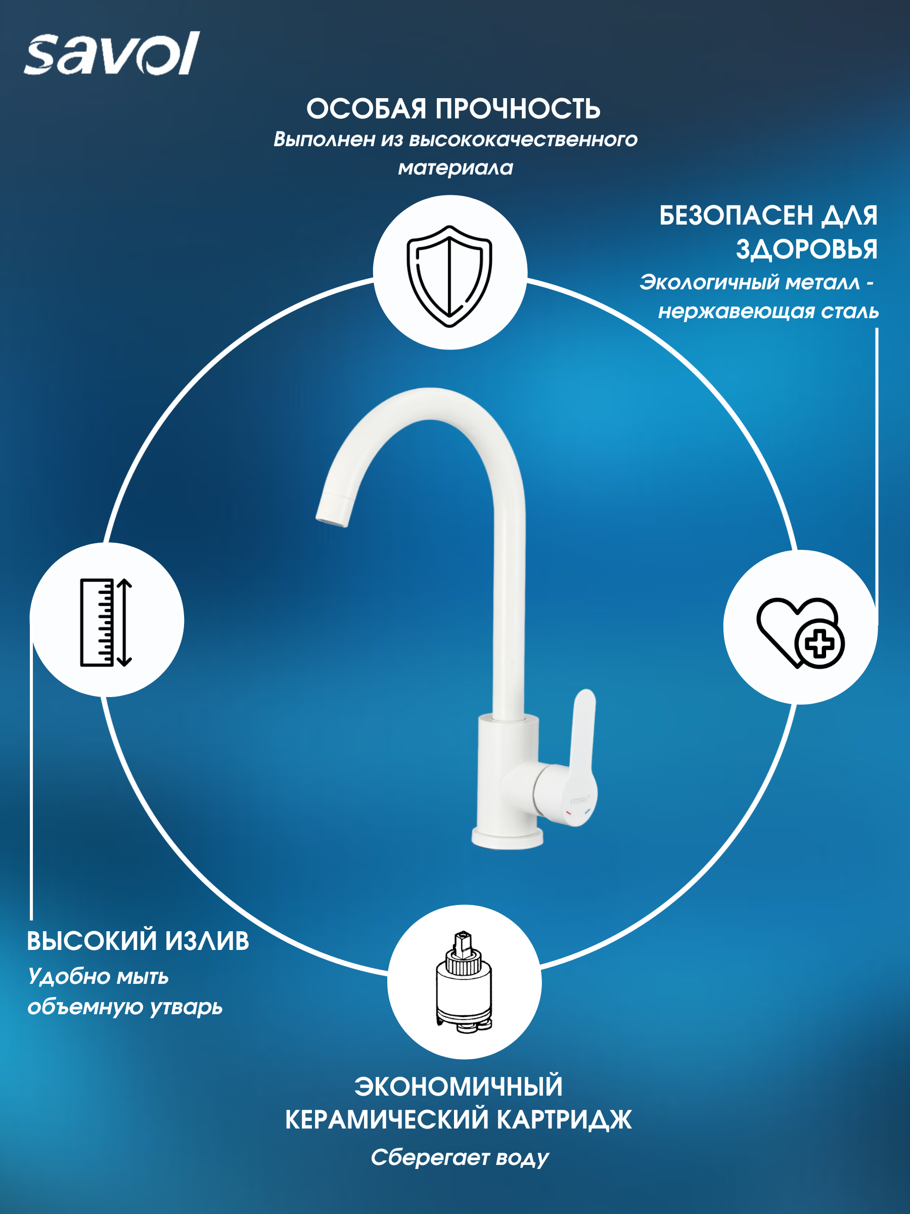 Смеситель для кухни раковины мойки кран с аэратором FS8232 Savol
