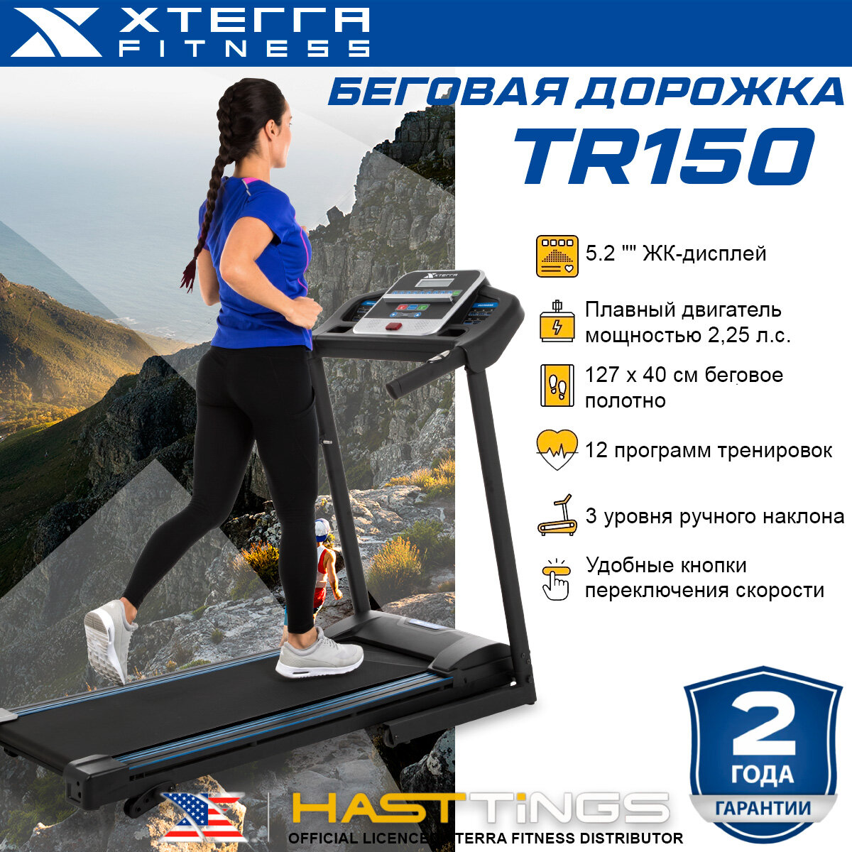 Беговая дорожка Xterra TR150 - до120 кг/защита суставов/12 программ/3 уровня угла наклона/2,25 лс двигатель/до 500 ккал за 1 ч тренировки информация:
