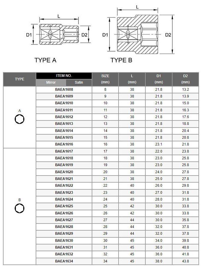 | 12-гранник | 1/2" |