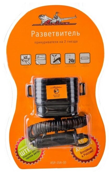 Отзывы на Прикуриватель-разветвитель 2 гнезда 15А с витым шнуром AIRLINE