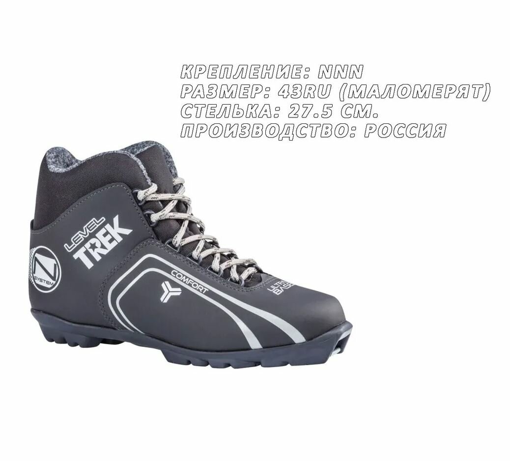 Отзывы на Ботинки лыжные TREK Level 1 NNN цвет чёрный-серый, 43 р. Стелька 27.5 см