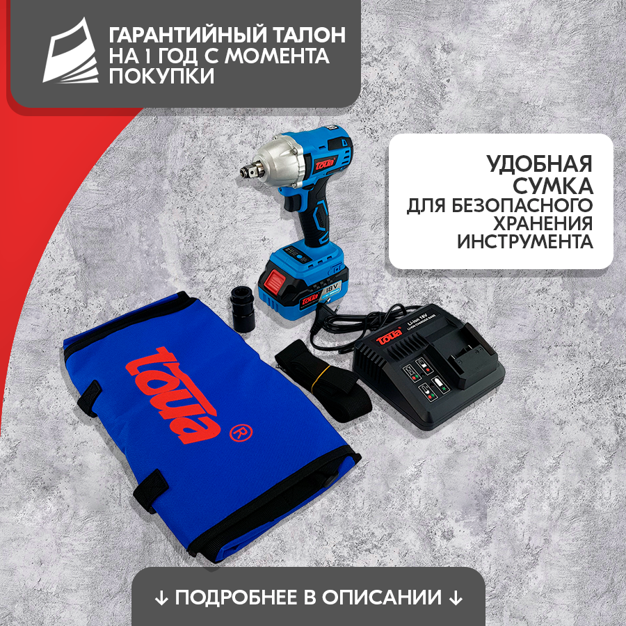 Гайковерт TOUA DBLW180 импульсный аккумуляторный (18V), бесщеточный двигатель, 1 год гарантии информация: