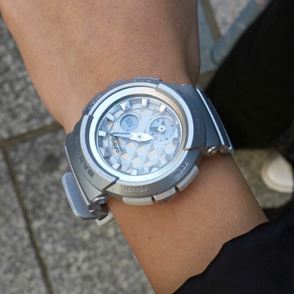 Наручные часы CASIO BGA-195-8A женские, кварцевые, будильник, хронограф, секундомер, таймер обратного отсчета, водонепроницаемые, противоударные, подсветка стрелок, подсветка дисплея, серебряный