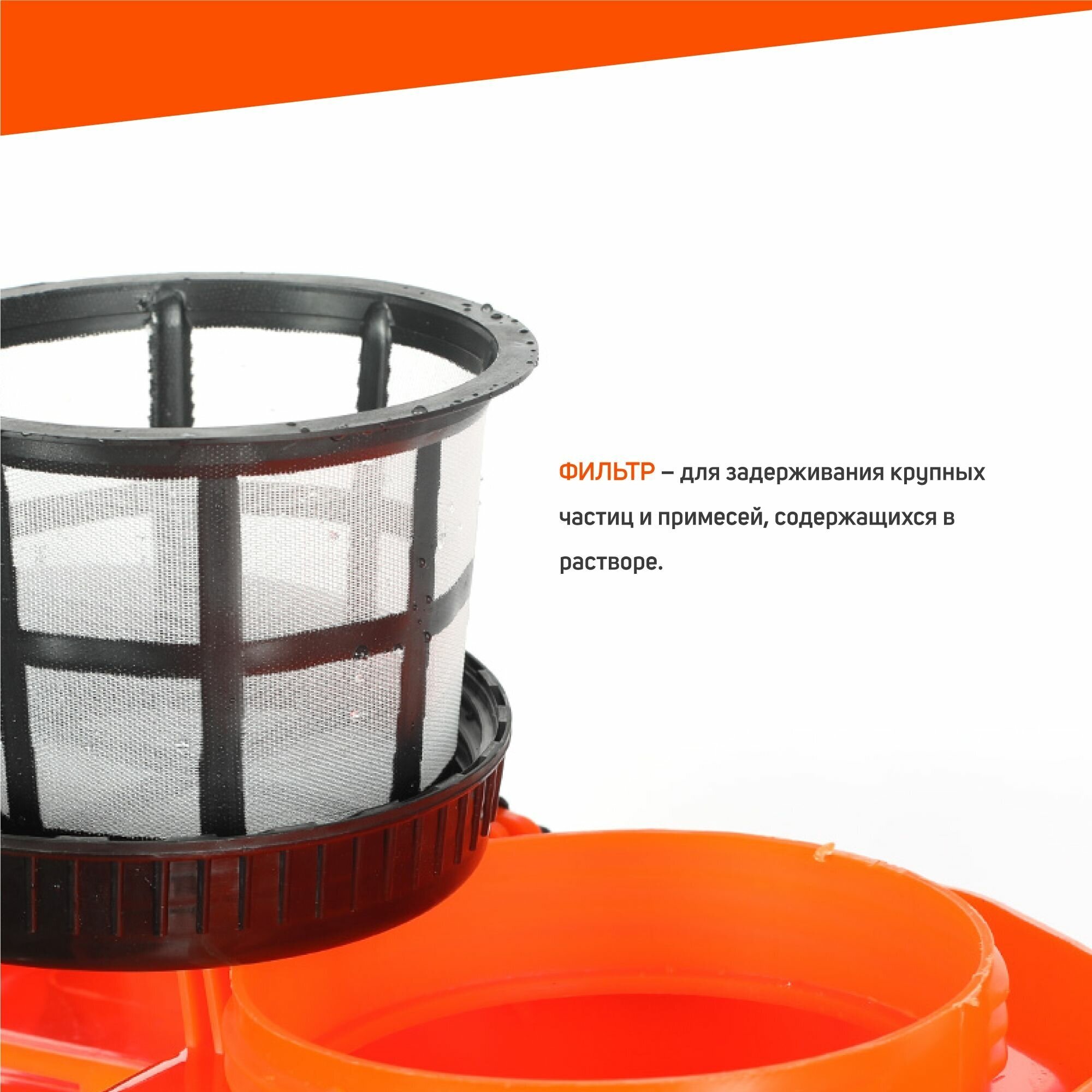 | Дополнительная информация | в комплекте насадки для равномерного распыления раствора, помпа; продолжительность работы опрыскивателя от аккумулятора зависит от интенсивности эксплуатации и максимально составляет 14 часов до полной разрядки |