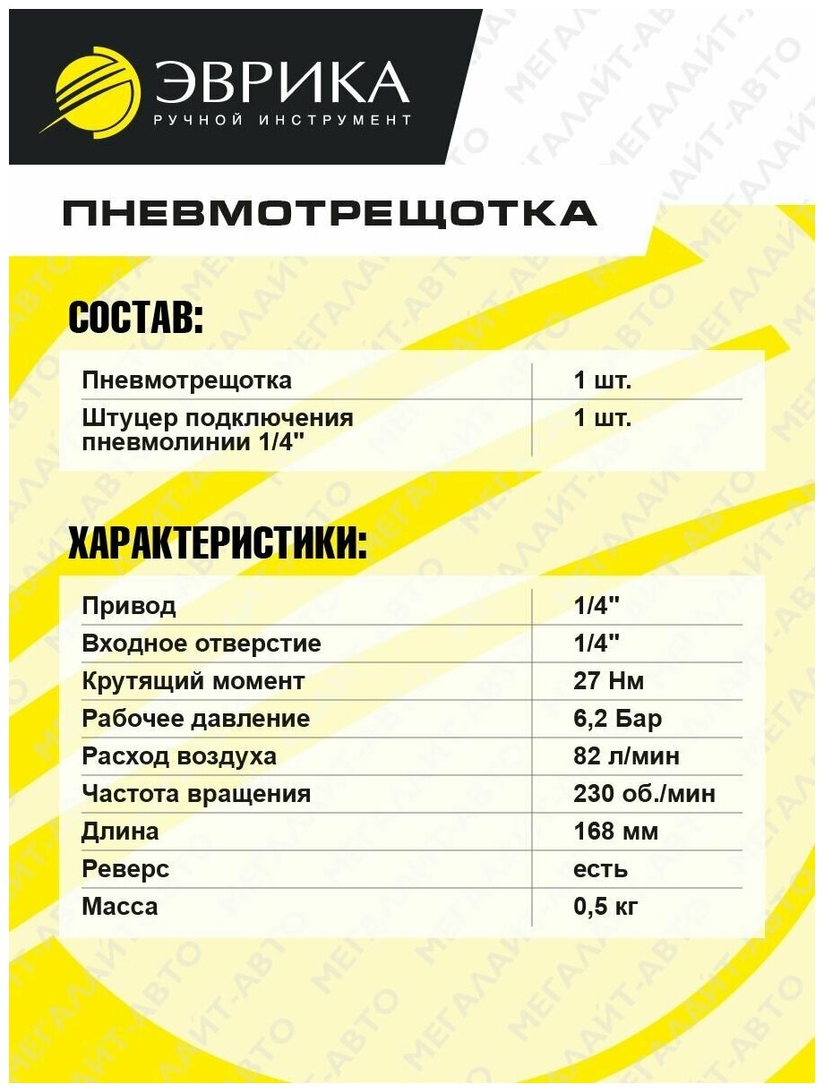 Пневмотрещотка 1/4дюйм. 27Нм 230 об/мин эврика информация: