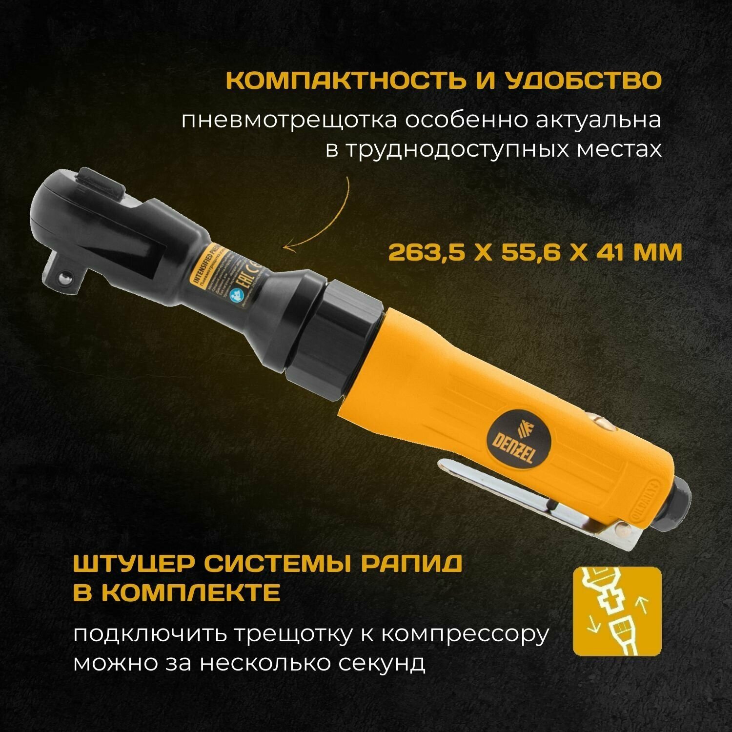 Трещотка пневматическая Denzel RP100 (100 Н·м)