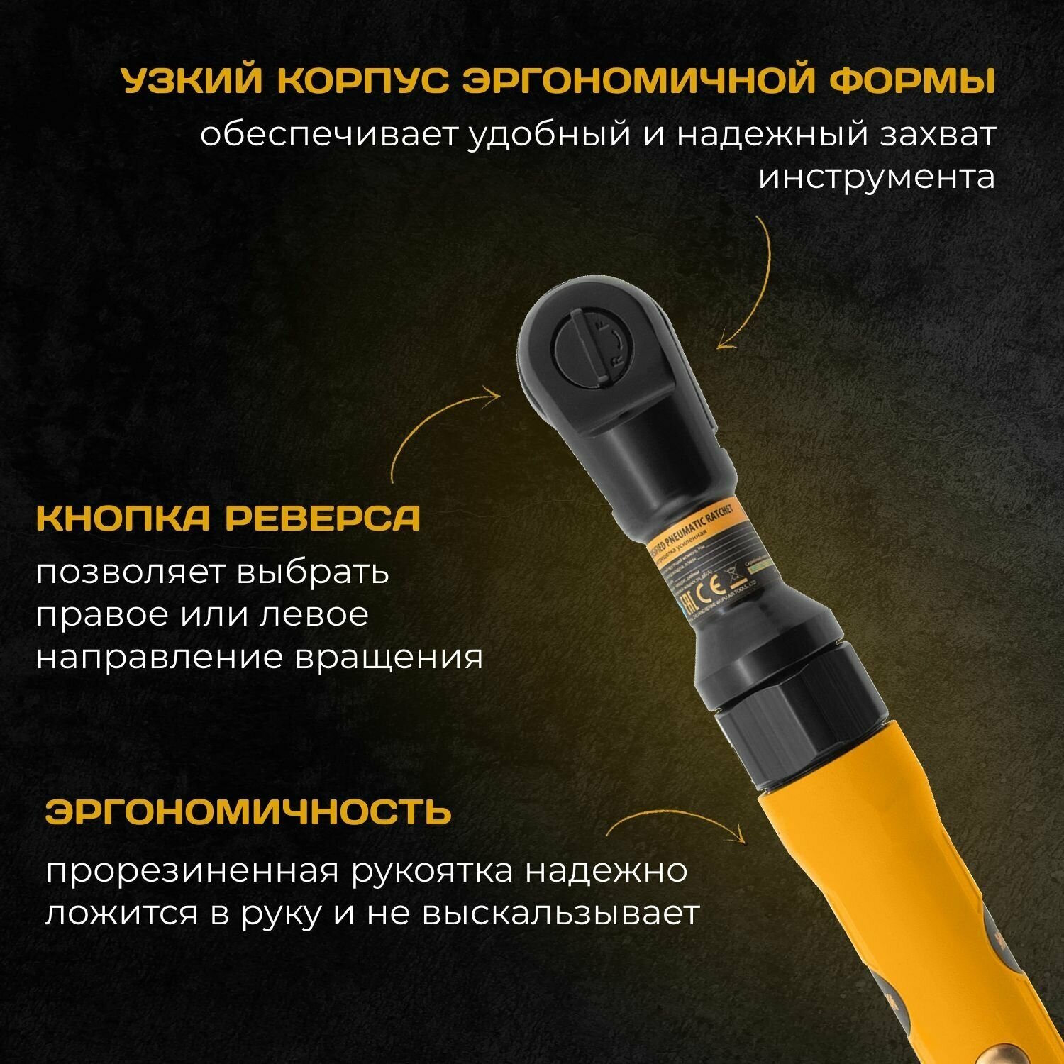 Усиленная пневмотрещотка RP100, 1/2", 160 об/мин, 100 Нм// Denzel 3 821 ₽