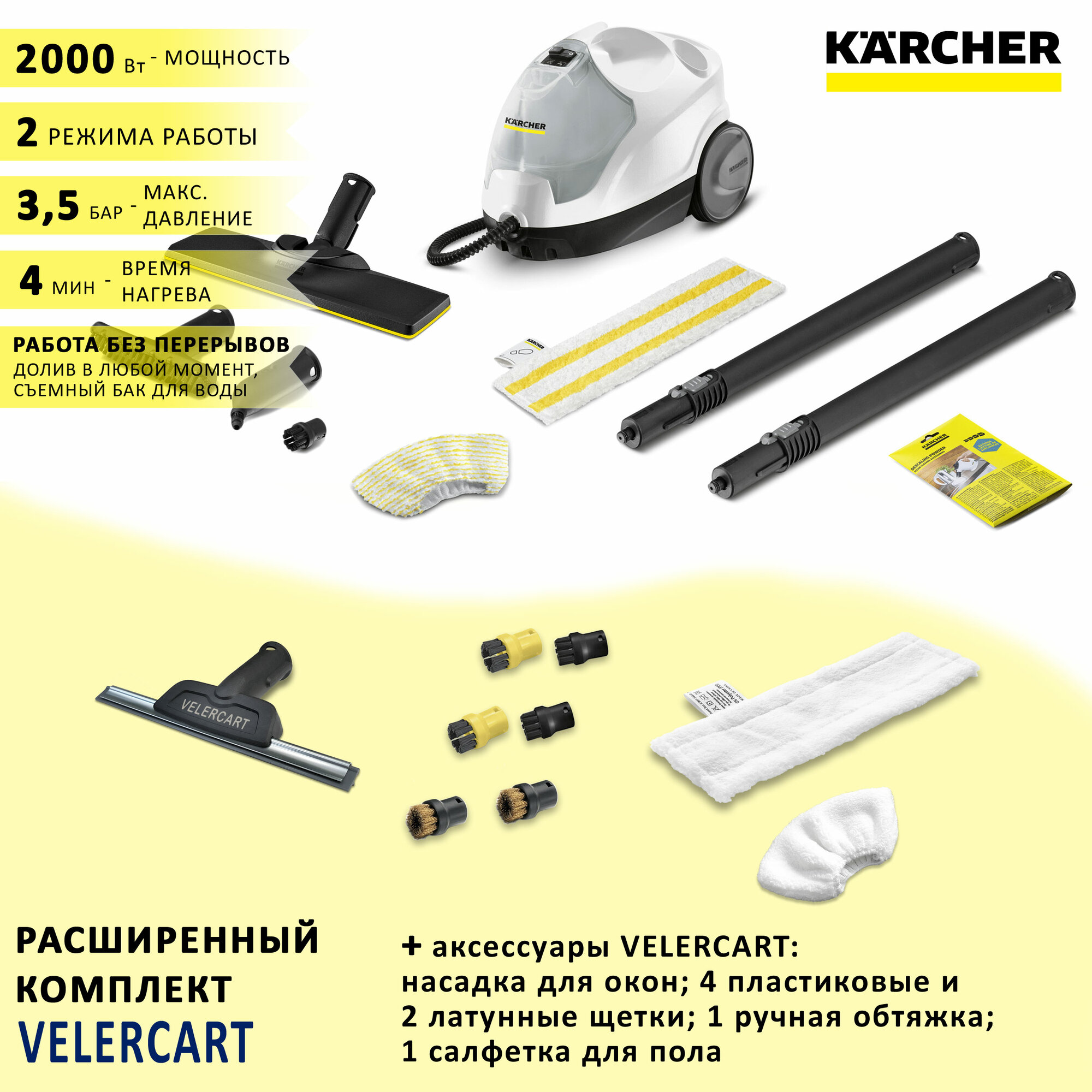 10 цен на Пароочиститель Karcher SC 4 EasyFix, белый + аксессуары VELERCART: насадка для мытья окон, 1 салфетка для пола, 1 обтяжка для ручной насадки, 4 пластиковые щёточки и 2 латунные
