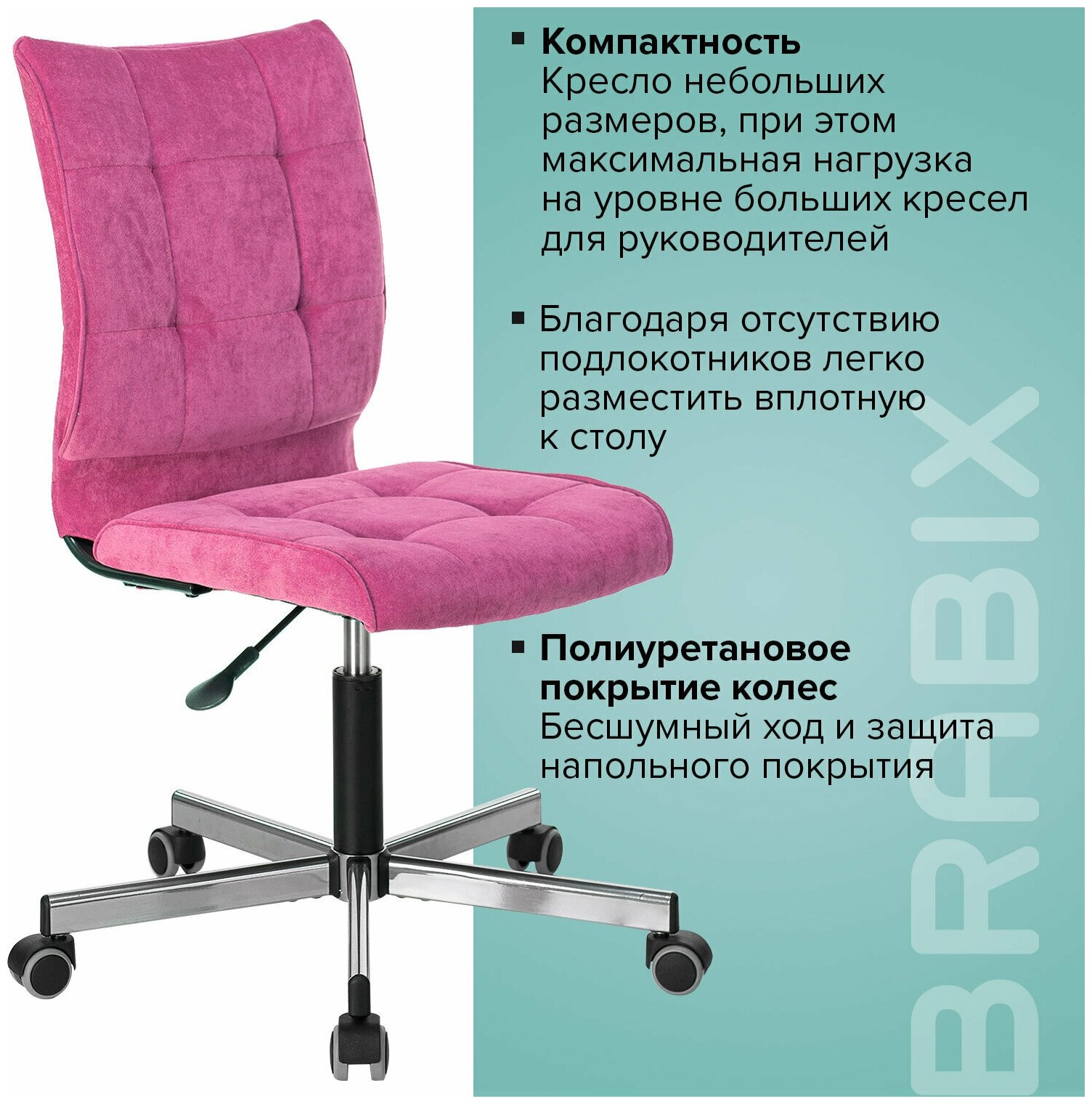 Кресло BRABIX «Stream MG-314», без подлокотников, пятилучие серебристое, ткань, малиновое, 532394 информация: