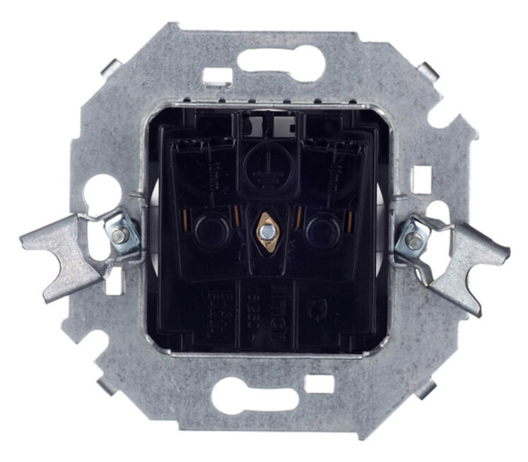 Розетка Simon 15 1591444-030 скрытая установка белая без заземления со шторками