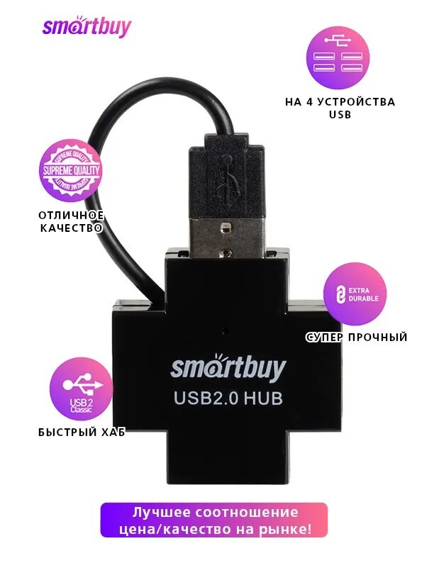 10 цен на USB HUB, хаб на 4 порта Smartbuy USB 2.0 (SBHA-6900-K) черный