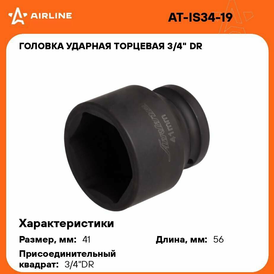 Головка ударная торцевая 3/4" DR шестигранная 41мм L=56 мм AT-IS34-19 AIRLINE информация: