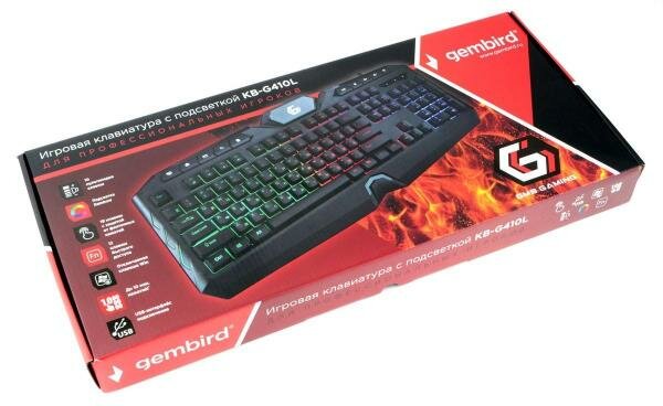 Игровая клавиатура с подсветкой Gembird KB-G410L, подсветка Rainbow