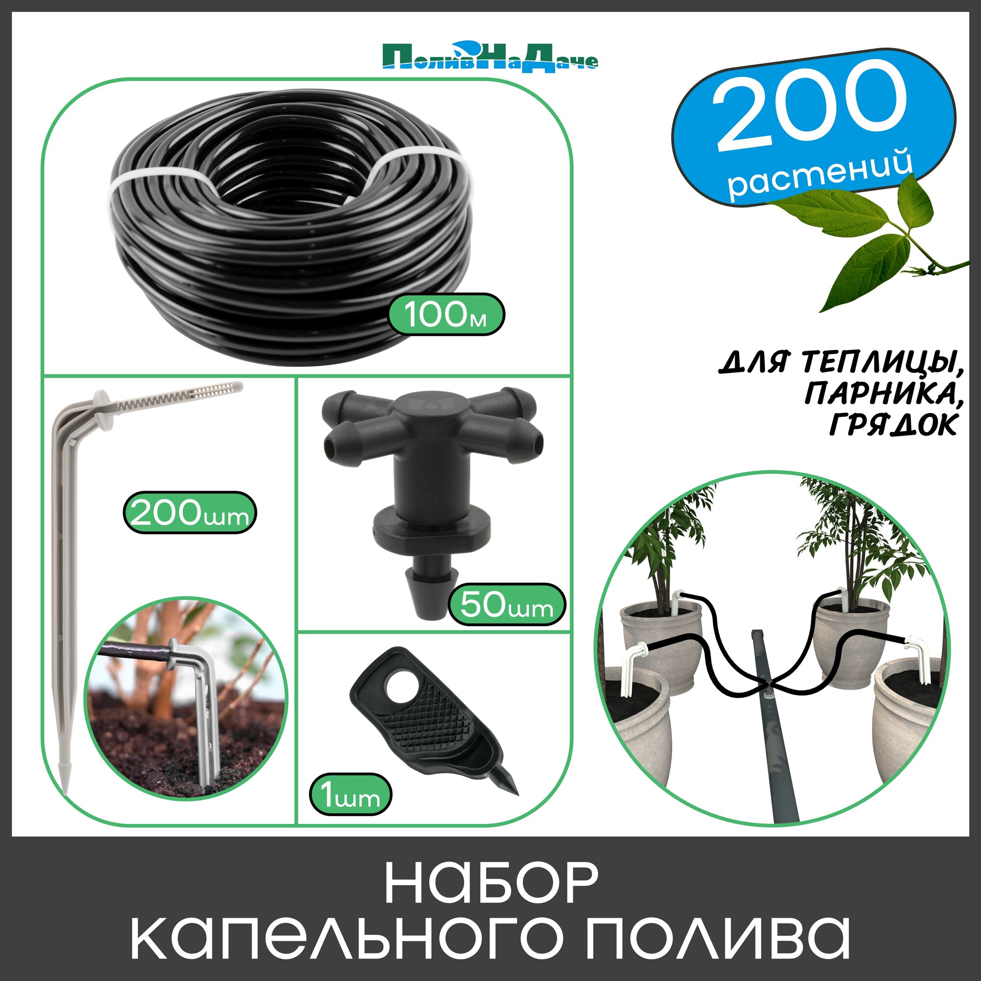 10 цен на Набор капельного полива на 200 растений для парника, теплицы, грядок
