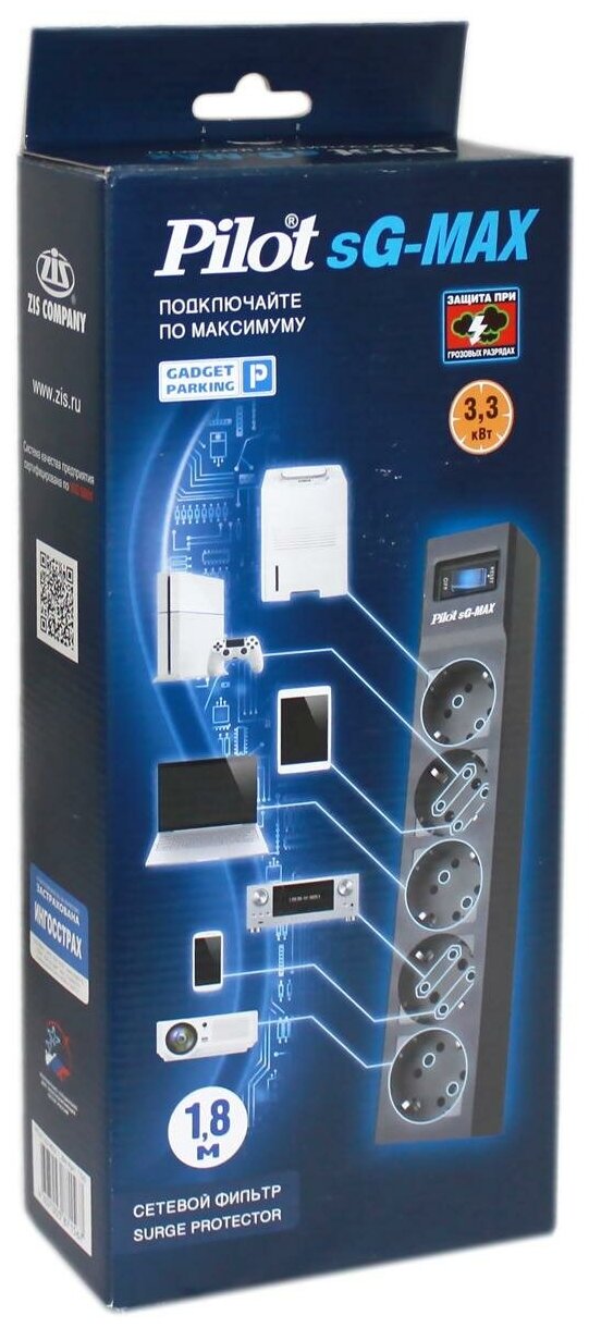 Отзывы на Сетевой фильтр Pilot sG-MAX 1.8 метра 5 двойных розеток стандарта Gadget parking, черный, 15А, 3.3 кВт (156)