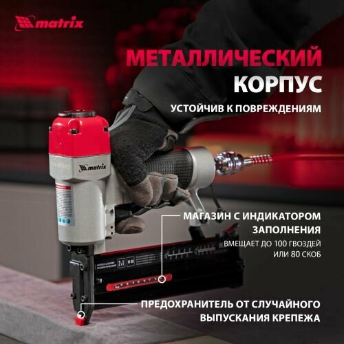 Пистолет пневматический Matrix 57426, 2 в 1, гвозди 18GA длина 10-50, скобы 18GA длина 13-40 информация: