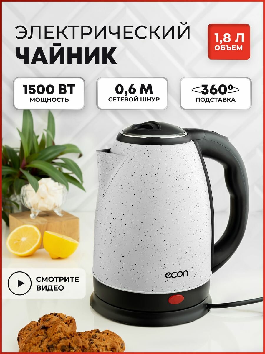 Чайник электрический ECON ECO-1890KE 1,8 л, черный/белый информация: