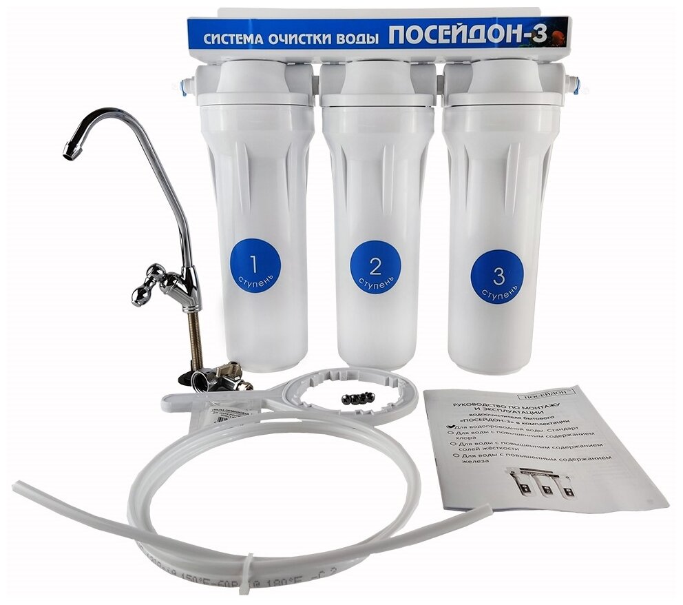 Отзывы на Фильтр для воды посейдон "ПОСЕЙДОН-3-1П" для жёсткой воды. Прозрачная колба. Система очистки воды"тройка"