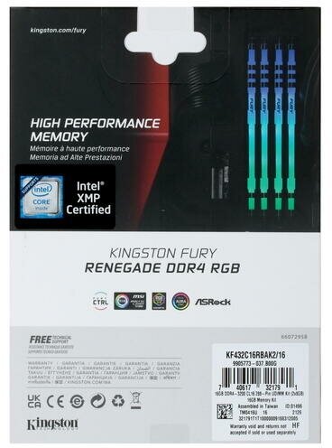 16Gb DDR4 3200MHz Kingston Fury Renegade RGB (KF432C16RBAK2/16) (2x8Gb KIT) информация: