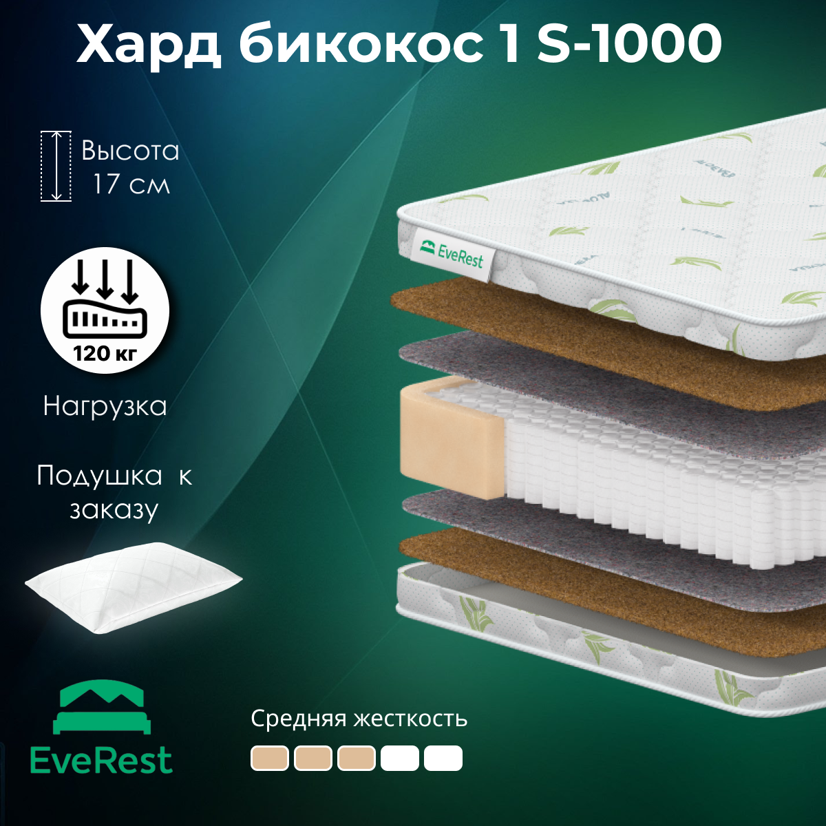 Матрас Everest Хард Бикокос 1 S1000 - жесткий, высота 17 см, независимые пружины мультипакет бюджетный, 1000 пружин на место, с кокосом 90х210 15 356 ₽